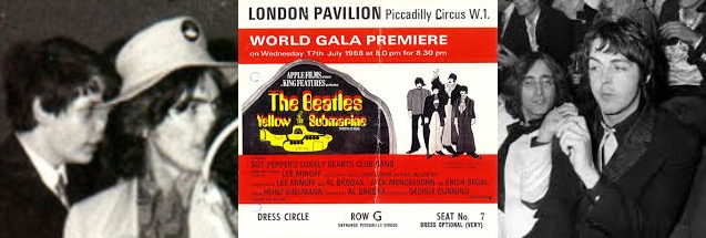 In 1968 David Stark (top left) was a 15 year old schoolboy, novice drummer and a huge Beatles fan ever since the group shot to fame in 1963. Despite only seeing them play live on one occasion (at Another Christmas Show at Hammersmith Odeon in January 1965) he was lucky to meet them all individually on various memorable occasions, and has some fascinating personal stories which he’s currently compiling for a forthcoming book. However his most remarkable encounter with the Fab Four was when he gatecrashed the world premiere of the legendary Yellow Submarine animated film and ended up sitting directly behind Paul and the entire group thanks to an incredible series of events, as he explains below.