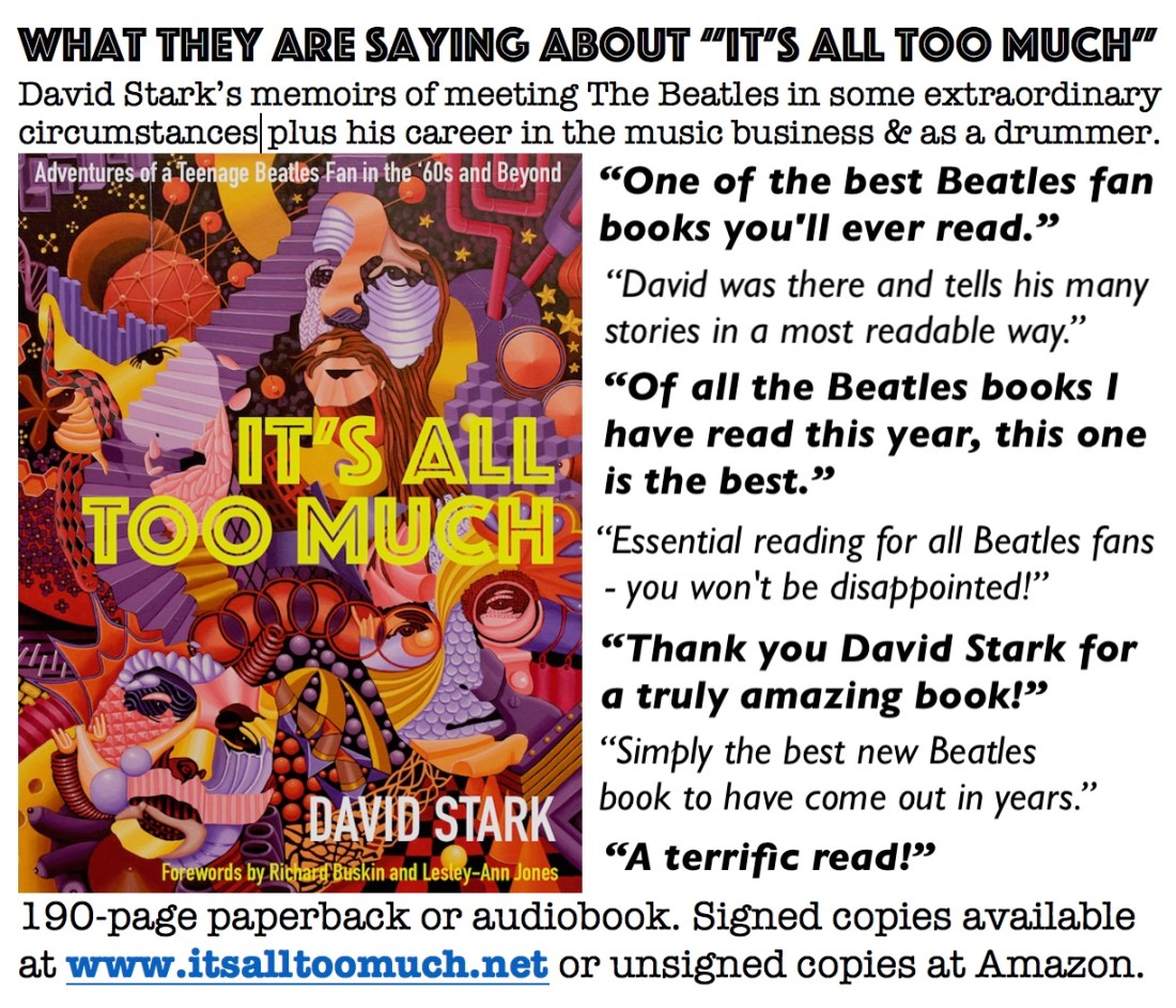 Extracted from “It’s All Too Much – Adventures of a Teenage Beatles Fan in the ’60s And Beyond” by David Stark. Publication date TBC. All rights reserved © 2018 David Stark.